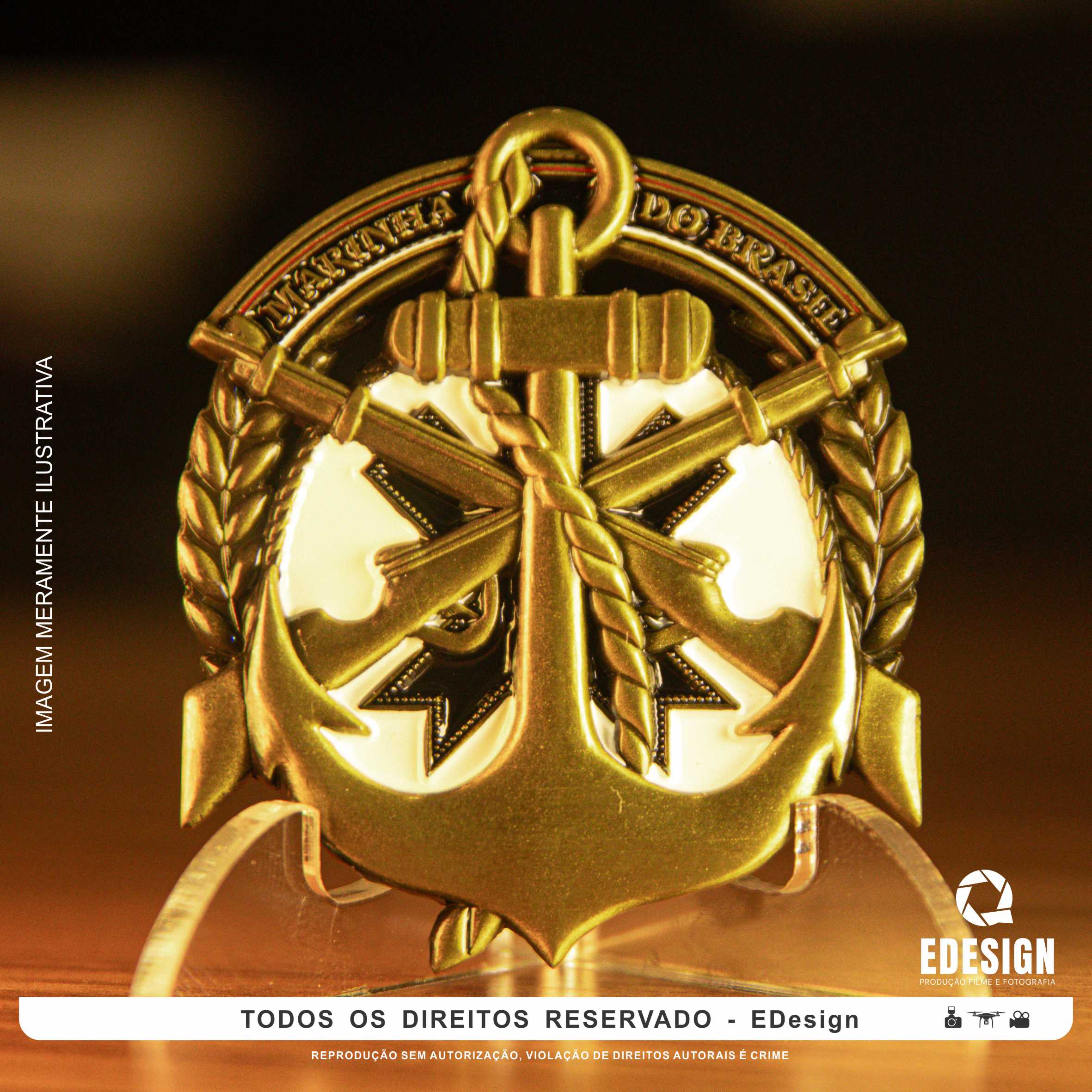 Moeda Fuzileiros Navais Bandadeira do CFN Fuzil cruzado com Ancora e gorro de fica fundo Branco